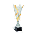 Coppa trofeo prestigioso  in metallo con foglie di alloro dorate su base scura . Questo prodotto può essere utilizzato per la premiazione di vari sport come Basket, Calcio, Tennis, Pallavolo, Ciclismo,ecc. Il prezzo è comprensivo di targhetta stampata in digitale UV