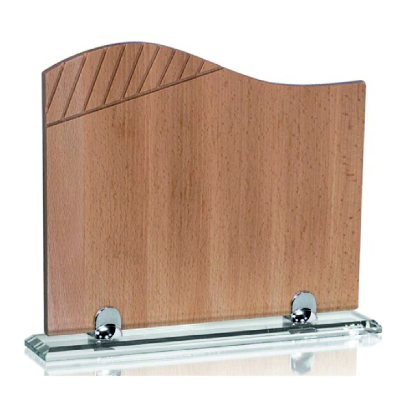Trofeo in legno forma a onda con base in vetro completo di standard box